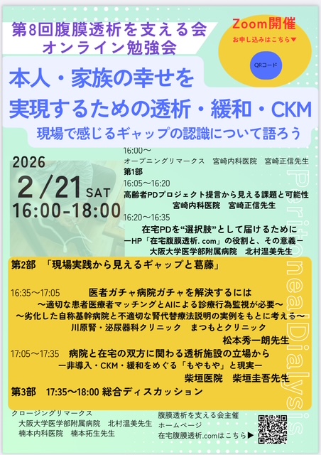 在宅腹膜透析を支える会主催、第8回オンラインセミナーを開催します。